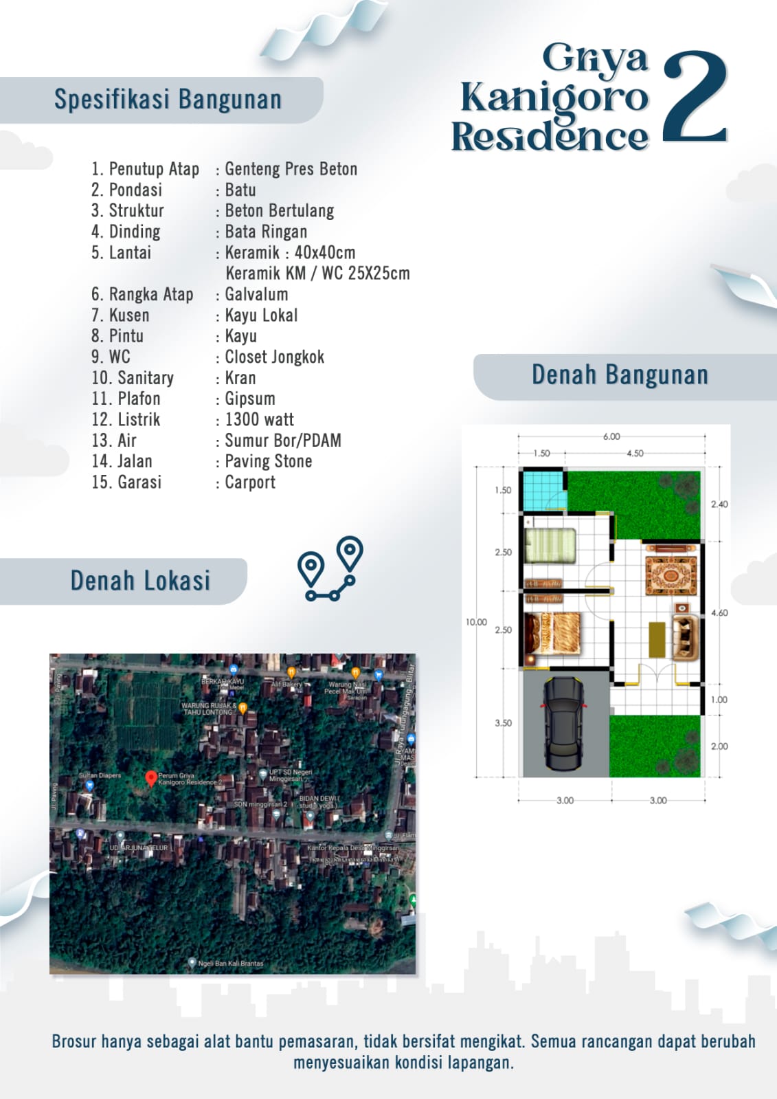 Gria Kanigoro Residence 2 adalah rumah impian yang menawarkan kenyamanan modern dan keindahan alam. Setiap unit dirancang dengan spesifikasi bangunan berkualitas tinggi, termasuk genteng pres beton, fondasi batu, dan struktur beton bertulang. Nikmati kenyamanan lantai keramik dan sanitari terbaik. Dengan listrik 1300 watt, air sumur bor/PDAM, dan jalan paving stone, setiap detailnya dirancang untuk kenyamanan Anda. Lokasinya yang strategis menawarkan akses mudah ke berbagai fasilitas sekitar. Jangan lewatkan kesempatan langka ini untuk memiliki rumah idaman yang menggabungkan estetika dan fungsionalitas.HUNIAN BERKUALITAS DAN BERKELAS DI KABUPATEN BLITAR